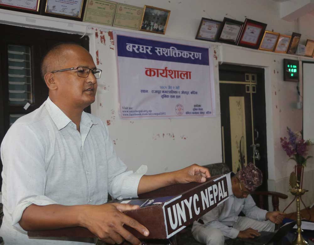मिति २०८१ साल जेठ २ गते बुधबारका दिन युनिक नेपालका अध्यक्ष श्री प्रिम बहादुर थारुज्यू को सभापतित्व तथा यस संस्थाका संरक्षक,पूर्व मन्त्री ,संविधानसभा सदस्य,अनुसन्धानकर्ता, तथा लेखक डा.गोपाल दहित ज्यूको प्रमुख आतिथ्यमा बरघर सशक्तिकरण कार्याशाला सम्पन्न गरियो।